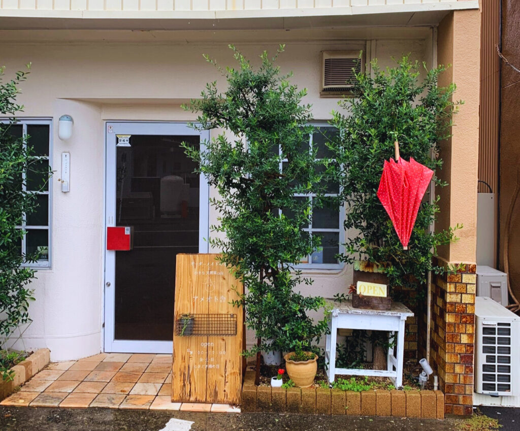 ――今では入り口にかかっている赤い傘が、アメオト舎の象徴にもなっていますよね。