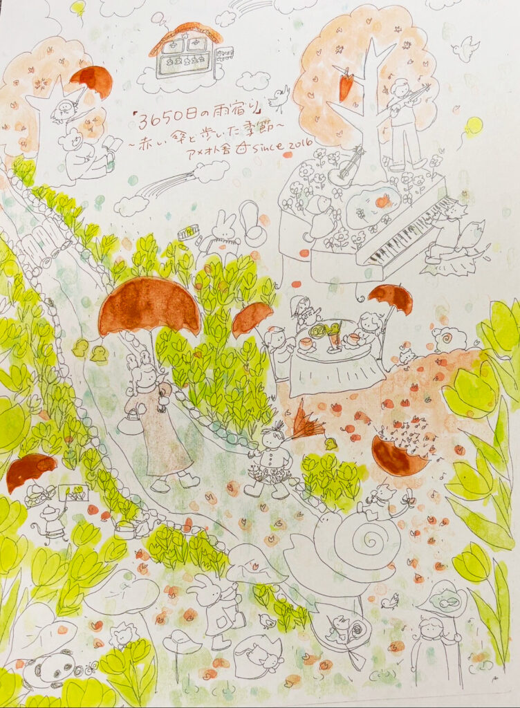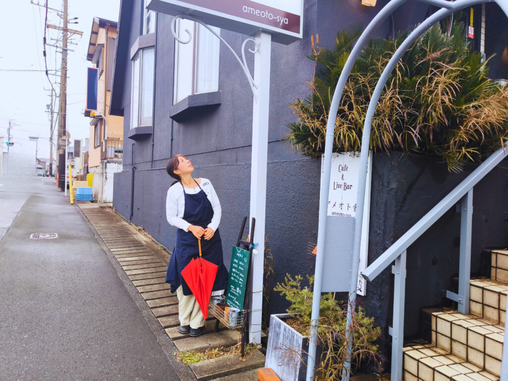 前に常連さんから、「奈美さん自身がアメオト舎だよ。だから奈美さんが赤い傘を開いた場所がアメオト舎だね。」って言ってもらったことがあったから。